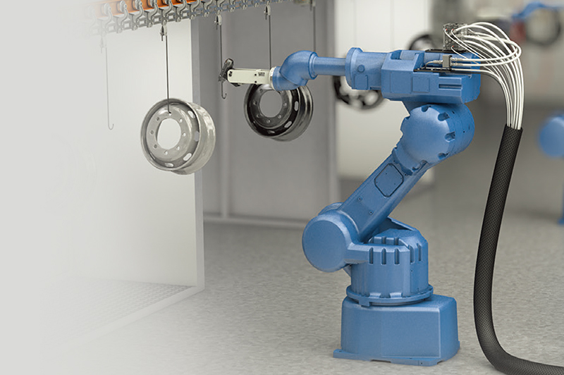 自动化喷枪作为系统的终端执行部件,需配套流量调节阀,可根据喷涂区域、工件形状等需求,精确控制单枪涂料输出量。更重要的是,喷枪与机器人控制系统实现无缝集成 —— 通过可编程逻辑控制器(PLC)或工业物联网(IIoT)平台,操作人员可远程设定并实时监控喷涂压力、流量、雾化效果等关键参数,系统能自动记录各项数据并生成报表,既实现了工艺参数的数字化追溯,又能通过算法优化确保不同批次、不同工件的喷涂一致性,大幅提升了生产过程的可控性与智能化水平。