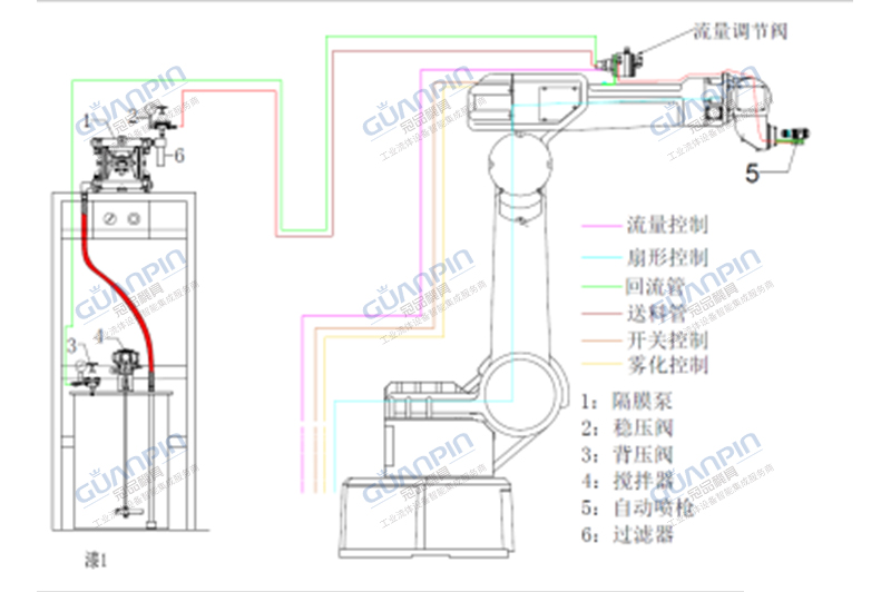 在机器人自动化喷涂作业中,一套稳定可靠且数据化可控的供漆喷涂系统是保障生产质量与效率的核心。其中,以气动隔膜泵为输送核心的配置方案因适应性强、调控精准等优势,成为行业内应用最广泛的选择之一,其整套系统通过科学的设备组合,有效解决了涂料输送中的压力波动、物料稳定性及参数可控性等关键问题。
